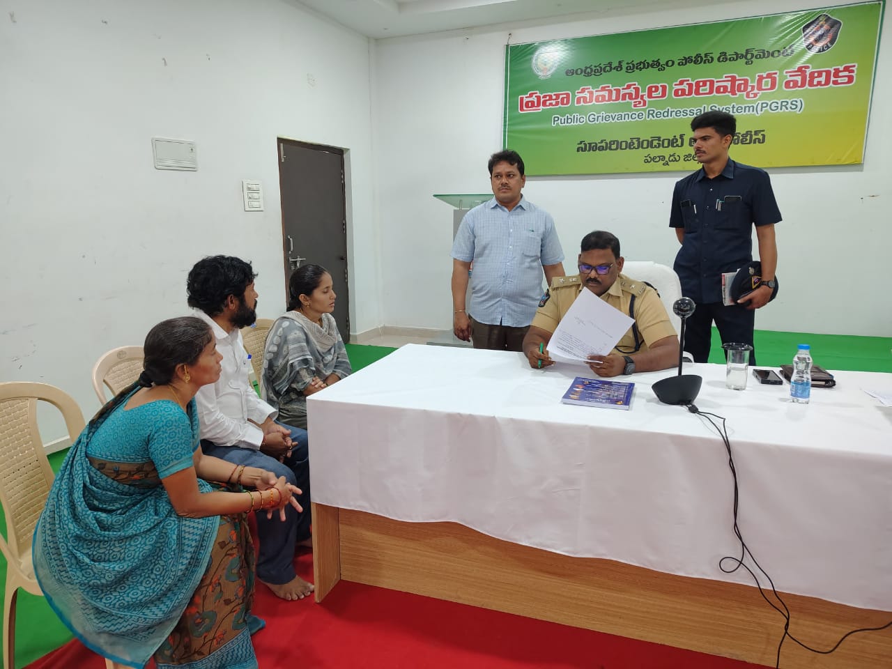 అనంతరం ఫిర్యాదు భర్త నిత్యం మద్యం సేవించి చీటికి మాటికి కొడుతూ, అసభ్యకరమైన పదజాలంతో దూషిస్తున్నట్లు, నరసరావుపేట కమ్మంపాలెం గ్రామానికి చెందిన వేరే ఆమెతో అక్రమ సంబంధం పెట్టుకుని ఇబ్బంది పెడుతున్నందుకు గాను ఈ రోజు ఎస్పీ ని కలిసి అర్జీ ఇవ్వడం జరిగింది.