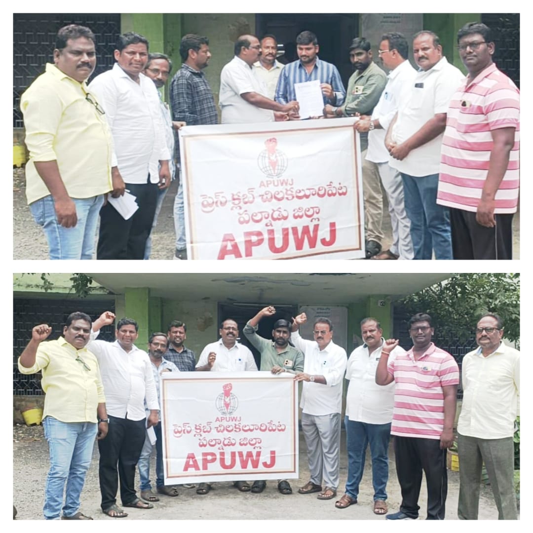 చిలకలూరిపేటలో తాసిల్దార్ షేక్ హుస్సేన్ కు విజ్ఞాపన పత్రం అందజేసిన జర్నలిస్టులు