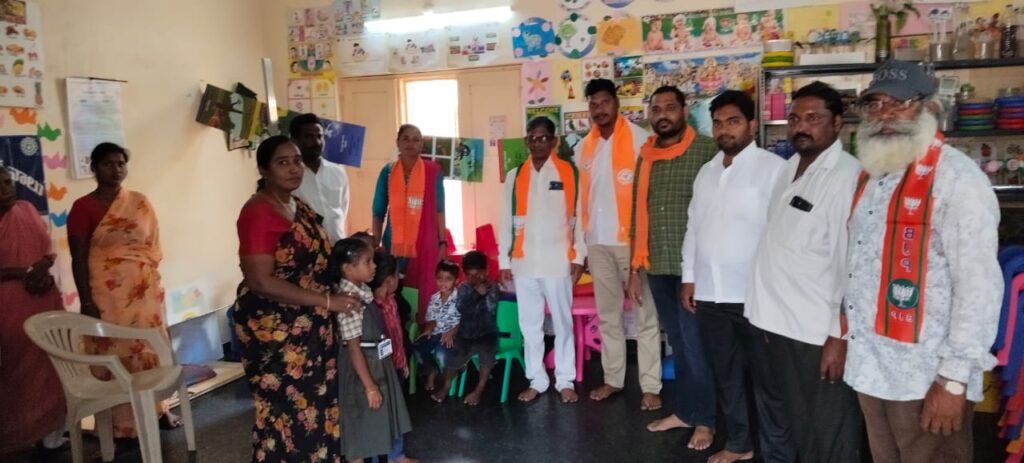 చిలకలూరిపేట నియోజకవర్గ ఎడ్లపాడు మండలం కారుచోల గ్రామ అంగన్వాడీ కేంద్రంలో చేయూత కార్యక్రమం లొ పాల్గొన్న బీజేపీ నాయకులు