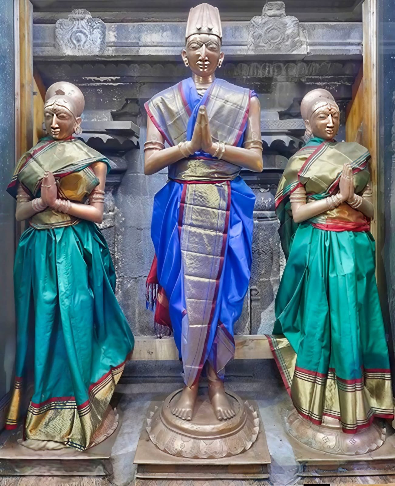 అన్నింటికంటే ముఖ్యంగా, తన విజయానికి కారణం ఆ శ్రీనివాసుడే అని నమ్మిన రాయలు, రాబోయే తరాలకు తన భక్తిని చాటిచెప్పేలా… తనది మరియు తన ఇద్దరు దేవేరుల (చిన్నాదేవి, తిరుమలాదేవి) కంచు విగ్రహాలను అక్కడ ప్రతిష్టించారు.